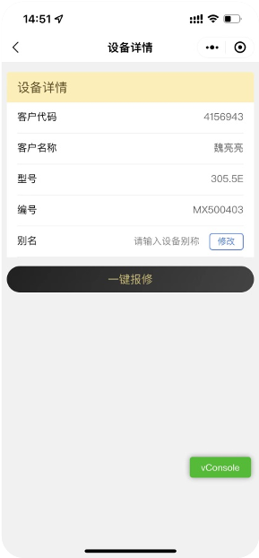 用户注册后,在“我的设备”中,选择设备进行报修;