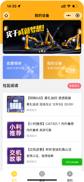 用户注册后,在“我的设备”中,选择设备进行报修;